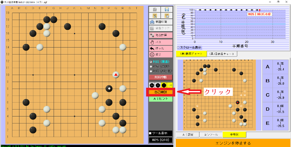 参考図の碁盤上のAにマウスの矢印を当てると、この図が出る